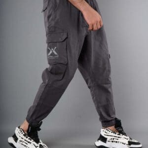 Deux poches cargo sur les côtés avec leurs rabat à clips ainsi que deux poches à l’arrière également .